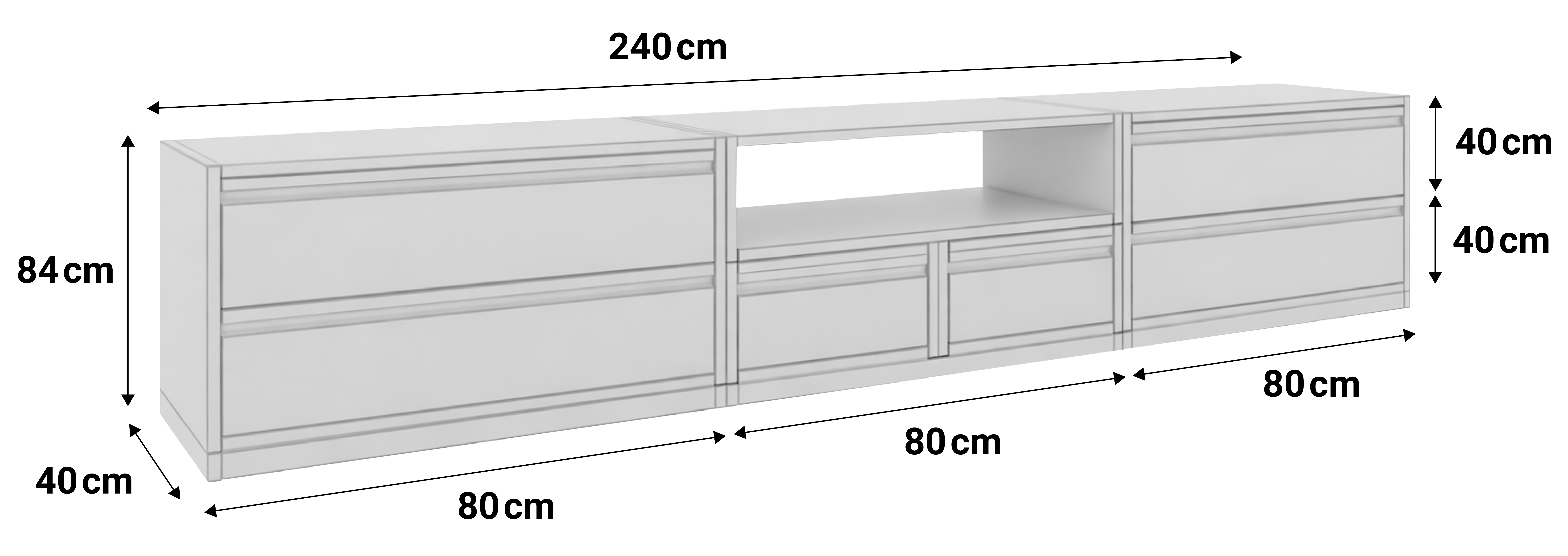 Höhe 44 cm Breite 240 cm Tiefe 40 cm
