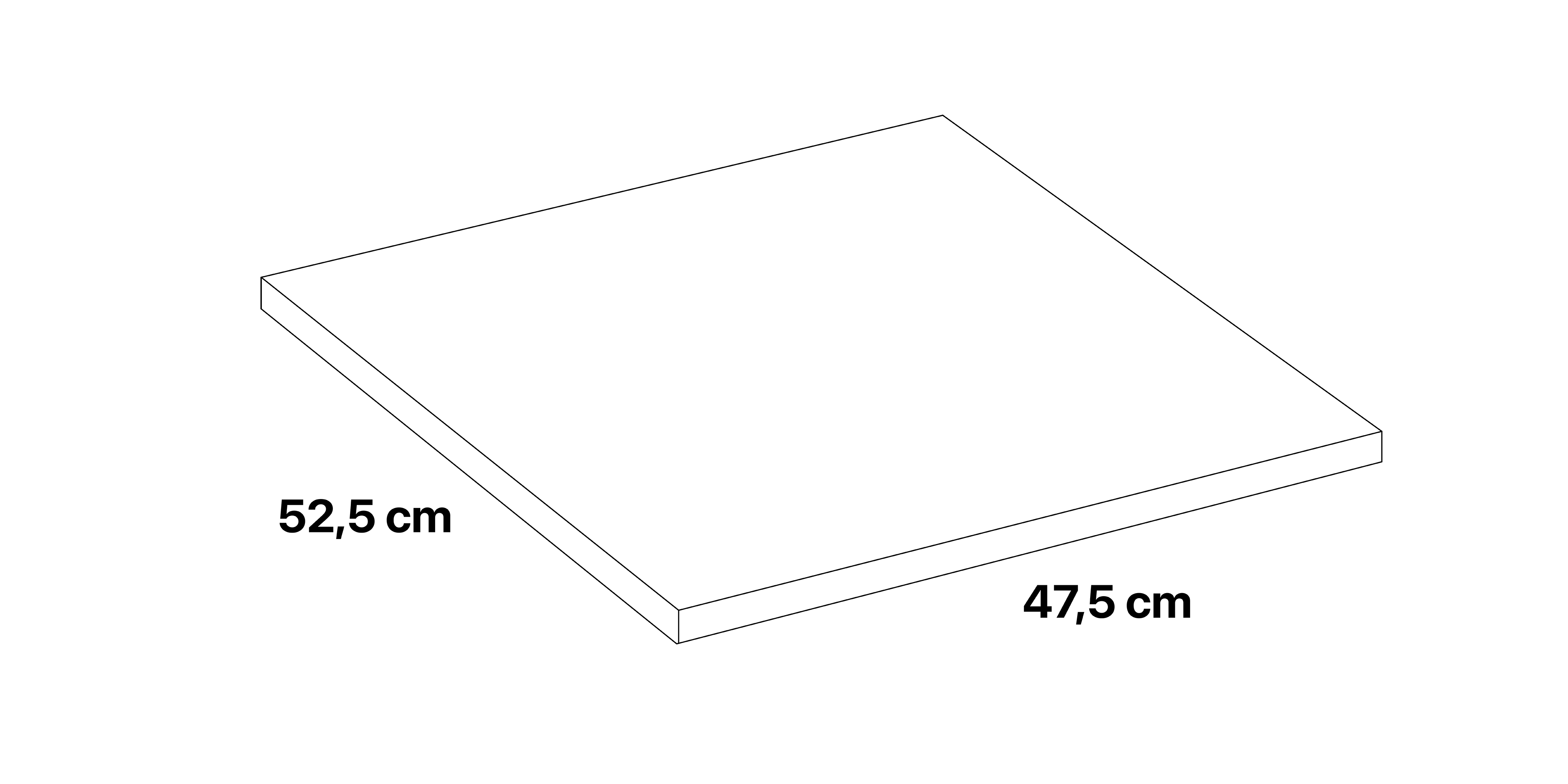 - Außenmaß: H 2 cm x B 47,5 cm x T 52,5 cm